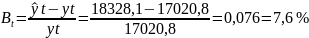 Отже, з проведеного прогнозу можна зробити наступний висновок. Дана лінійна модель являється достовірною, адже значення відносного відхилення на перевищують ± 10%. Але абсолютно точною її не можна вважати, тому що відносне відхилення перевищує 5%.