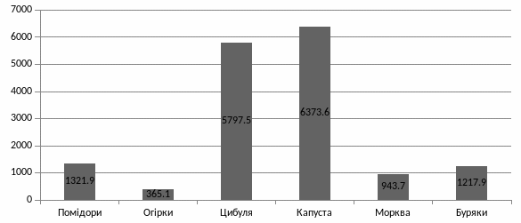 Отже, на основі цих даних прогнозуємо, що в 2014 році обсяг продажів овочевої продукції господарства становитиме: