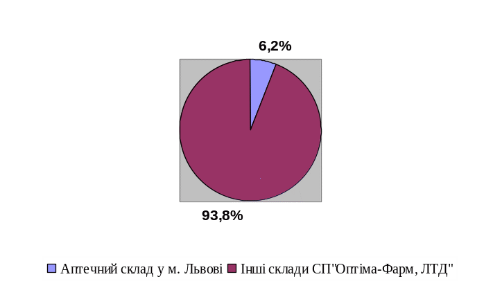Проведемо аналіз збутової діяльності аптечного складу СП „Оптіма-Фарм, ЛТД” у місті Львові та її частку в загальних результатах підприємства. У 2010 році було реалізовано лікарських засобів на суму 129 млн. 941 тис. грн. В загальній структурі це склало 6,16% (рис 2.6).