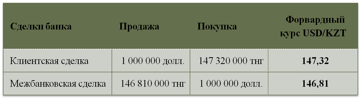 Сонымен, банк бұл операцияларды жүргізуде теңдей пайда табады