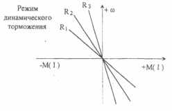 С энергетической точки зрения, данный способ не экономичен, так как большое количество энергии выделяется на добавочном сопротивлении, которое необходимо включать в якорную цепь для ограничения бросков тормозного тока. Механические характеристики для этого способа торможения представлены на рис. 4.