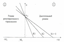 Рис. 1 .Механические характеристики двигательного режима и режима рекуперативного торможения при изменении добавочного сопротивления