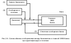 Режим реального времени (on-line) характерен тем, что банкомат должен быть подсоединен непосредственно или через телефонную сеть к главному компьютеру банка. В этом случае регистрация транзакций осуществляется непосредственно на главном компьютере банка, хотя подтверждение о транзакции выдается на принтер банкомата. При реализации транзакции банкомат обменивается с главным компьютером банка тремя сообщениями (рис. 9.6):