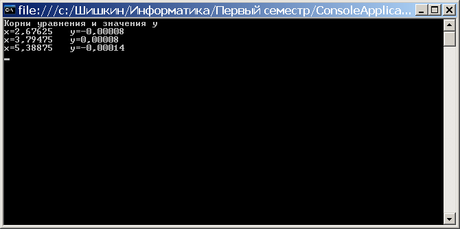 Console.WriteLine("Уравнение в заданном интервале x корней не имеет");