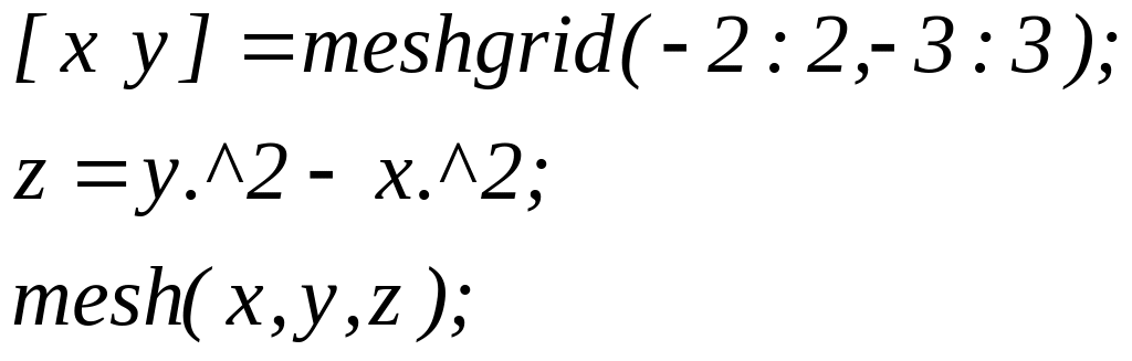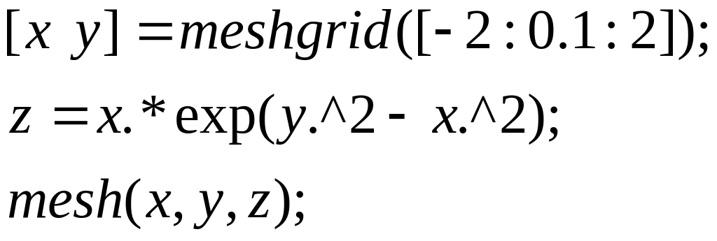 mesh(X, Y, Z) meshc(X, Y, Z) meshz(X, Y, Z)