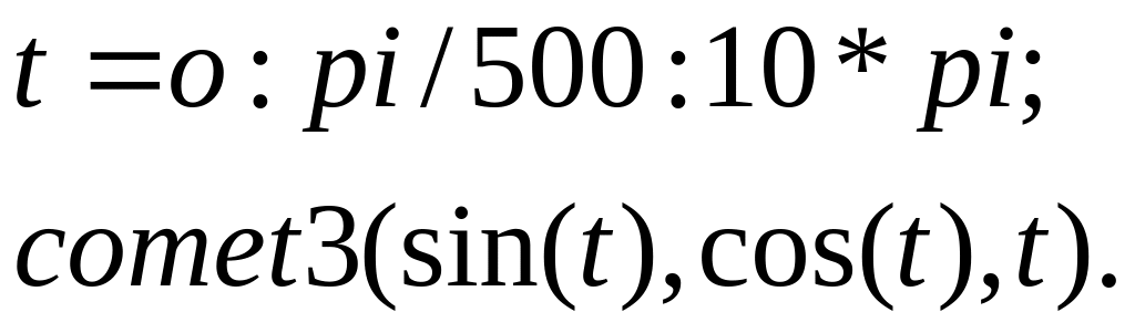 При вивченні руху точки на площині та у просторі MatLab дозволяє побудувати графік руху і прослідкувати за ним. Для побудови анімаційного ролика існує дві функції: comet(x,y), comet3(x,y).