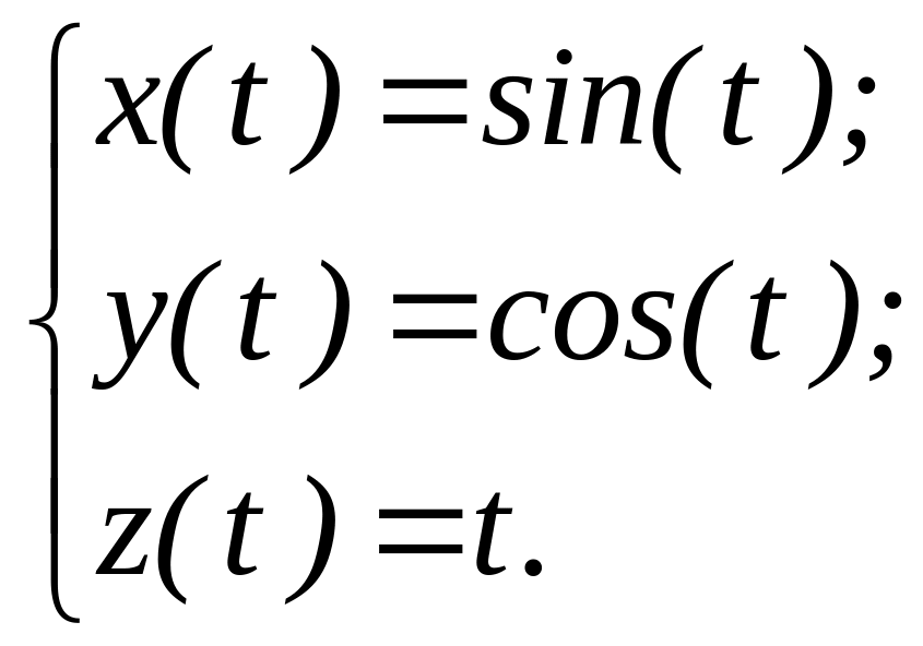 Показати рух точки у просторі вздовж гвинтової лінії, параметричне рівняння якої має вид