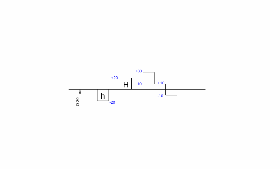 Отклонения записываются справа от номинального размера в миллиметрах: вверху – верхнее, внизу – нижнее.