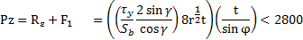 Во второй из формул учтена касательная сила на задней поверхности застойной зоны, высота которой равна H0. При расчете силы Рz для условий точения сталей без применения СОЖ μ =0,4 .