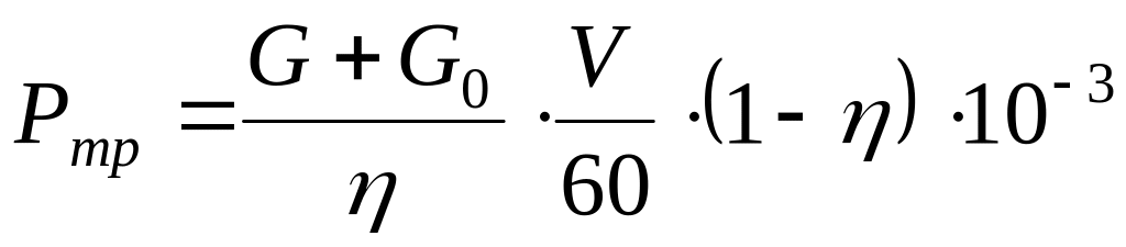 де Ртр – потужність тертя у механізмі підйому розраховується за формулою (2.3).