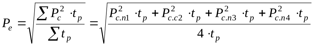 Еквівалентна потужність, кВт, яка розрахована за формулою (2.17), перераховується на найближчу стандартну тривалість вмикання ТВном. за формулою (2.11).