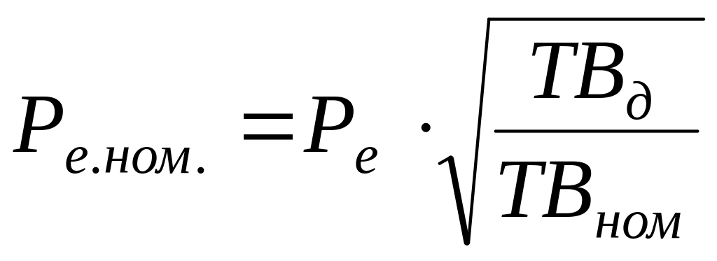 Еквівалентна потужність, кВт, яка розрахована за формулою (2.9), перераховується на найближчу стандартну тривалість вмикання ТВном.
