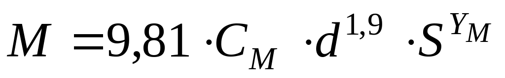 На підставі дослідних даних отримана формула для обертаючого моменту, Н м: