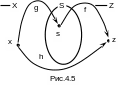 Сложная функция. Пусть заданы функции sg(x) и zf(s) такие, что область определения функции f совпадает с областью значений функции g (рис.4.5). Функция g отображает множество X на множество S, а функция f отображает множество S на множество Z. Эти два отображения вместе задают новое отображение h множества X на множество Z. Такое отображение и называется сложной функцией (суперпозицией функций f и g):