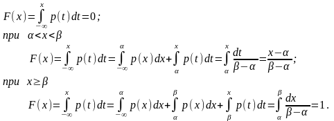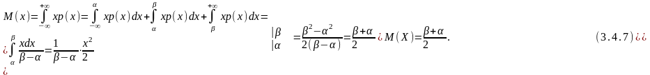 Пример 5. Найти математическое ожидание случайной величины Х, имеющей равномерное распределение на отрезке [α, β].