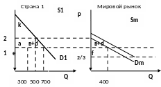 Взаимный спрос на мировом рынке: Dm = D1- S 1.
