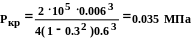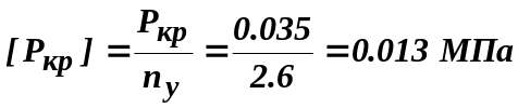 Для проверки аппарата на устойчивость воспользуемся формулой Мизеса для длинных цилиндров. В соответствии с этой формулой, внешнее критическое давление будет равно