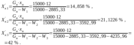 В этой подпрограмме рассчитываем: расход греющего пара, расход выпаренной воды по корпусам, конечные концентрации раствора и в первом приближении тепловые нагрузки аппаратов.