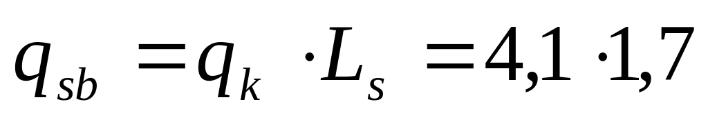 Определение погонной нагрузки в килоньютонах на метр на второстепенную балку сводим в таблицу 4.