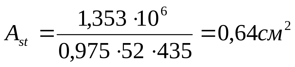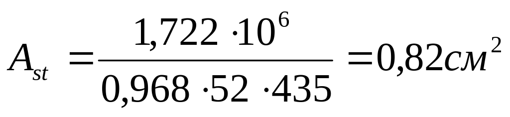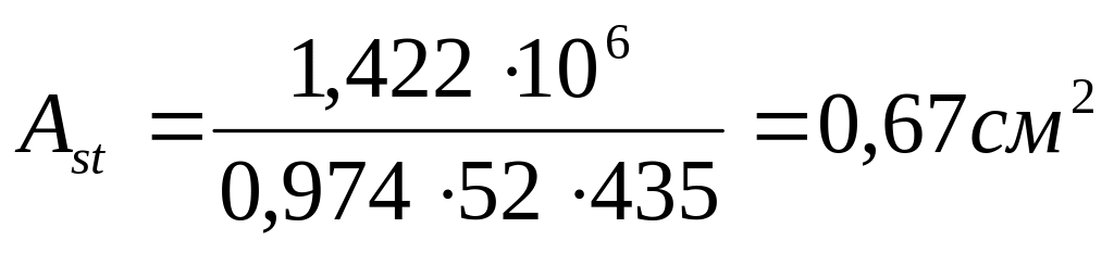 Зная значение необходимого для расчета коэффициента ,площадь рабочей арматуры: