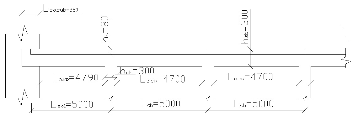 Рисунок 6 – К определению расчетных пролетов второстепенной балки