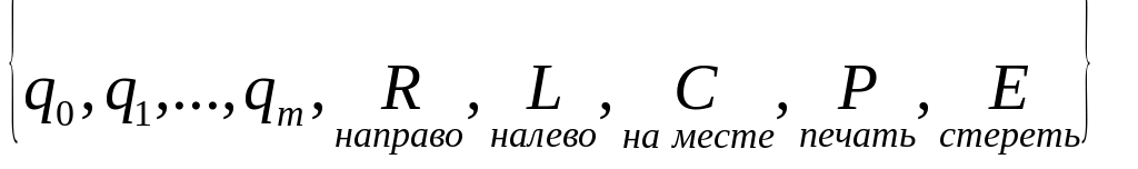Элементарные шаги машины – это считывание и запись символов, сдвиг на ячейку влево или вправо, а также переход управляющего устройства в следующее состояние.