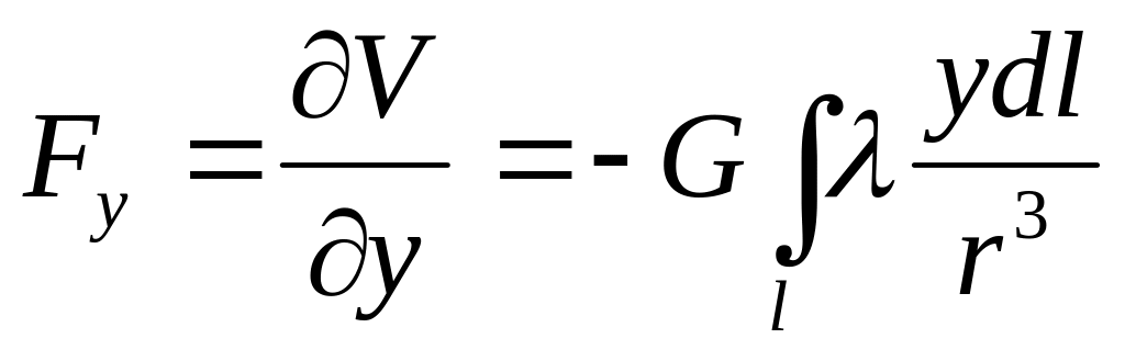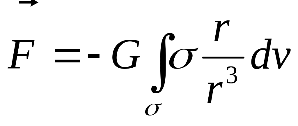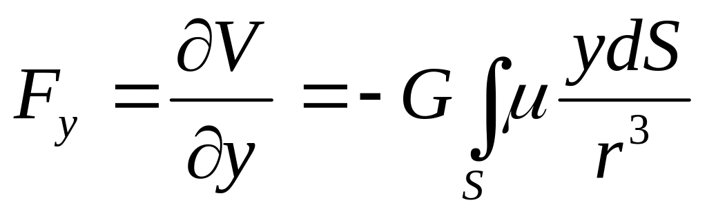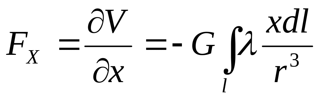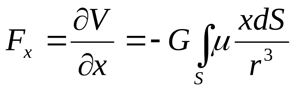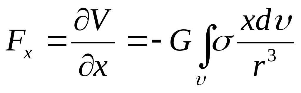 Көлемдік массаның тартылыс күшін тартылыс потенциалы арқылы өрнектейміз, ол үшін алдымен күш проекциялары жазамыз: