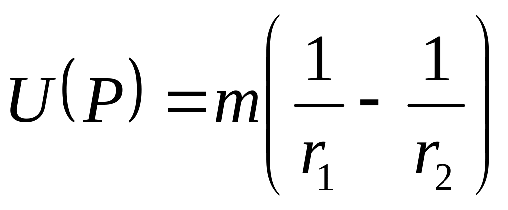 Мұндай екі нүктелік массалар тудыратын Р нүктесіндегі тартылыс потенциалы – нүктелік массалар системасының потенциалы ретінде анықталады :