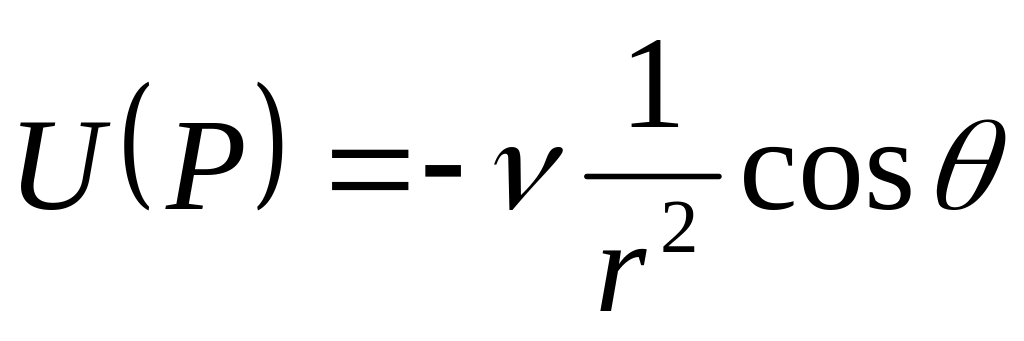 Бұл потенциал ара қашықтық квадратына керi пропорционал, әрi радиус вектордың диполь моментi бағытынан ауытқу бұрышына тәуелдi.