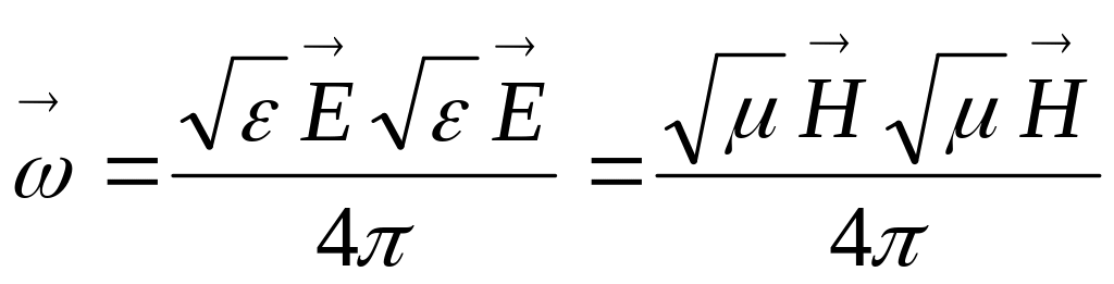 Егер бұл өрістің кездері біреу ғана болыпэ олардың кернеуліктерінің (Ежәне Н) өзгерулері бірдей фазада болса, онда кез келген уақыт үшін электрлік жэне магниттік өрістің энергиялары тығыздығы бірдей болады. Сондықтан электромагниттік өріс тығыздығын былай жазамыз: