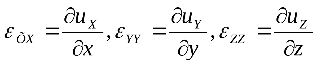 Деформация тензоры. Элементар бетке түсiрiлген кернеулiктi қарастыра отырып, осы бөлiктегi деформацияны сипаттаймыз. Олардың арасындағы байланыс арқылы Гук заңының жалпы түрдегі жазылымын аламыз.