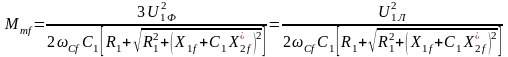 где дополнительные индексы f указывают на то, что соответствующие параметры определены при частотах питающего напряжения, отличных от f1=50 Гц. Для построения механических характеристик предварительно определим критическое скольжение и критический момент для частоты, не равной 50 Гц.