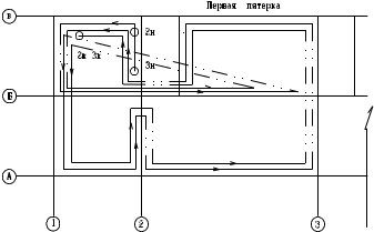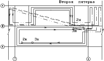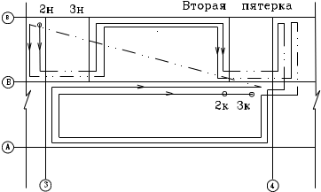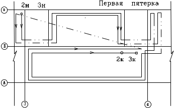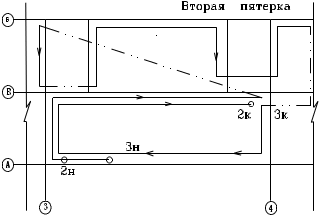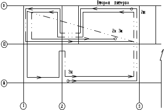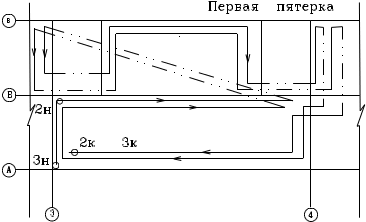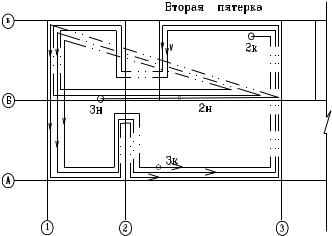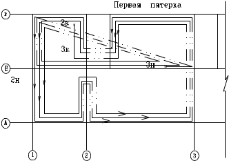 Направление движения каменщиков при кладке стен Холостой ход каменщиков Кирпичи , укладываемые при кладке стен предыдущего этажа Кирпичная кладка в уровне проемов