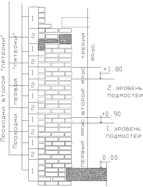 СХЕМА ВЫПОЛНЕНИЯ КИРПИЧНОЙ КЛАДКИ ПО РЯДАМ, ЯРУСАМ И СМЕНАМ
