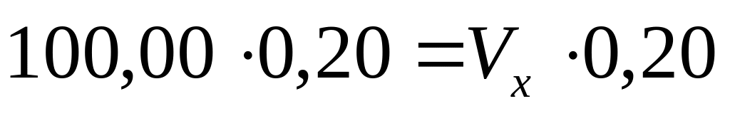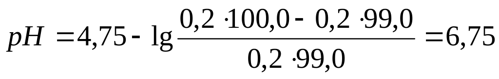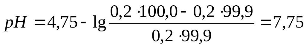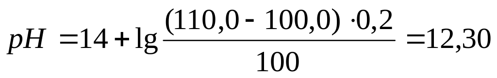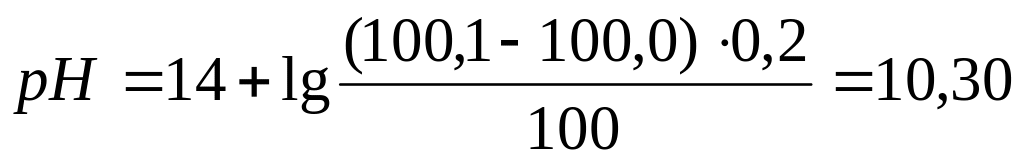 4. За точкой эквивалентности величина раствора определяется только избытком добавленного титранта. Расчет проводится при добавлении 100,1 мл раствора (100,1%).