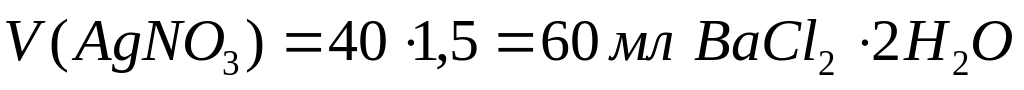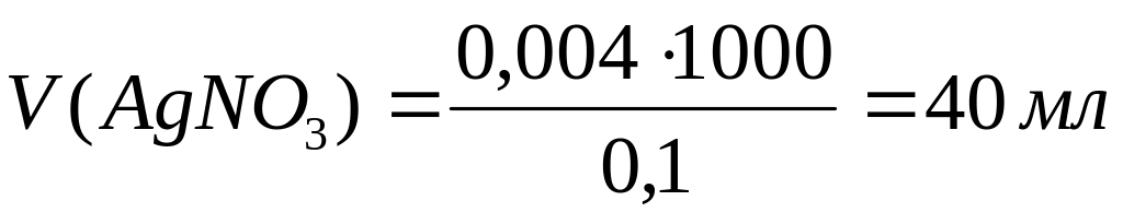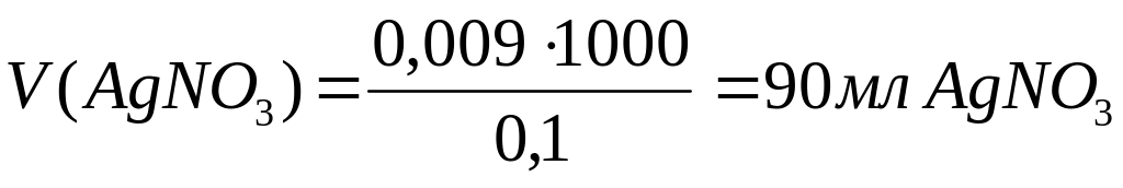 1. Рассчитаем объем 0,1 М для осаждения хлора при взаимодействии с .