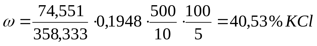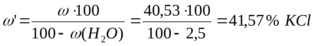 30. Навеску сильвинита массой 5 г растворили в мерной колбе вместимостью 500 см3. Из 10 см3 этого раствора получили 0,1948 г тетрафенилбората калия КВ(С6Н5)4. Вычислить массовую долю (%) КСl во влажном и абсолютно сухом сильвините, если содержание влаги в образце – 2,5%.