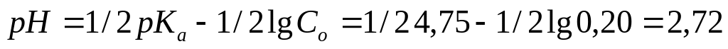 Уксусная кислота – слабая кислота, а – сильное основание, поэтому в данном случае рассмотрим титрование слабой кислоты сильным основанием. Расчет проводим без учета изменения объема раствора.