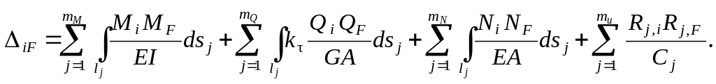 ного воздействия Fi = 1 или Mi = 1 по направлению iF ;