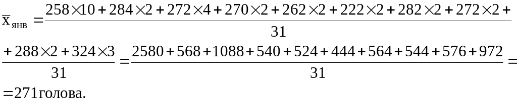 на 1.1 текущего года имелось в наличии 258 голов, на 1.2.- 263 голов, на 1.3. – 321 голов, на 1.4. – 270 голов, на 1.5. – 248 голов, на 1.6. – 263 голов, на 1.7. – 230 голов; на 1.8. – 228 голов; на 1.9. – 260 голов; на 1.10. – 264 голов; на 1.11. – 250 голов; на 1.12. – 240 голов; на 1.1. следующего года – 246 головы.