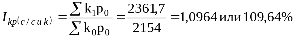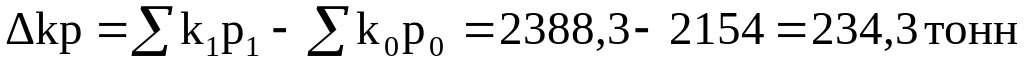 Этот индекс показал, что валовой надой молока в отчетном году по сравнению с базисным годом увеличился на 10,9% (110,9-100) или на 234,3 тонн.