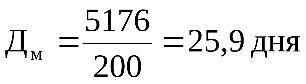 4) фактическая продолжительность рабочего месяца Дм определяется как отношение величины отработанных человеко-дней к среднесписочному числу работников