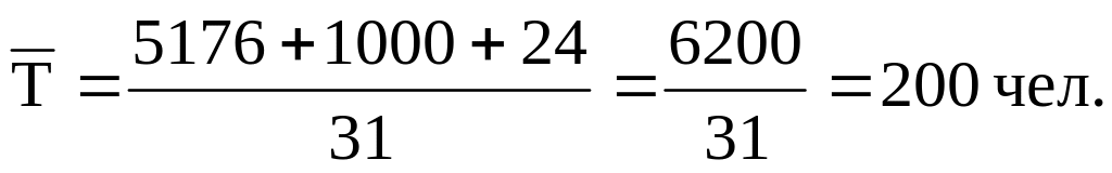 В течение августа в сельскохозяйственной организации отработано 5176 человеко-дней, выходные дни и очередные отпуска составили 1000 человеко-дней, целодневные простои 24 человеко-дней, число рабочих дней месяца – 26.