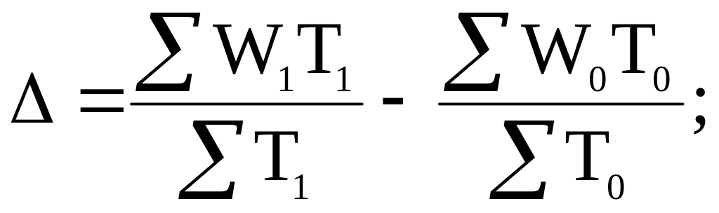 9. Абсолютное изменение среднего уровня производительности труда за счет изменения структуры работающих можно рассчитать по формулам: