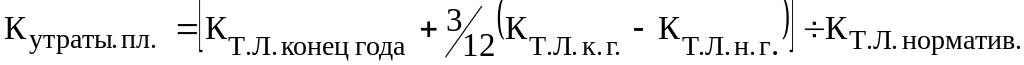 Если эти коэффициенты, или хотя бы один из них ниже норматива, рассчитывают коэффициент восстановления платежеспособности (К утраты пл.) по следующей формуле: