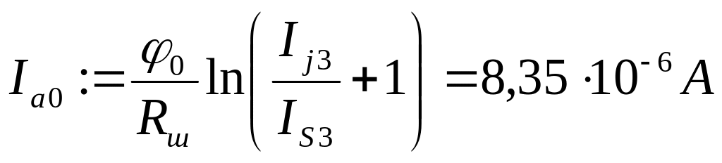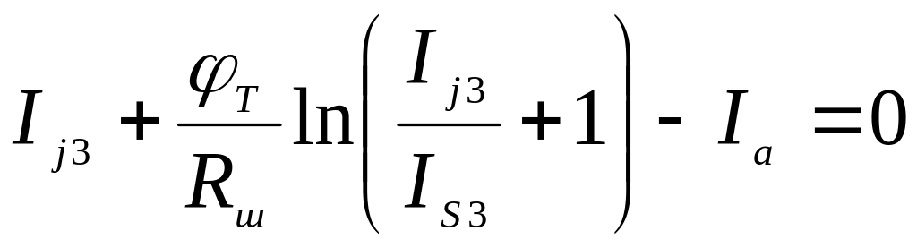 Будемо вважати що струм аноду заданий і необхідно визначити падіння напруги на тиристорі. Напругу переходу 3 визначимо через струм, підставляючи у 3 рівняння системи одержуємо трансцендентне рівняння: