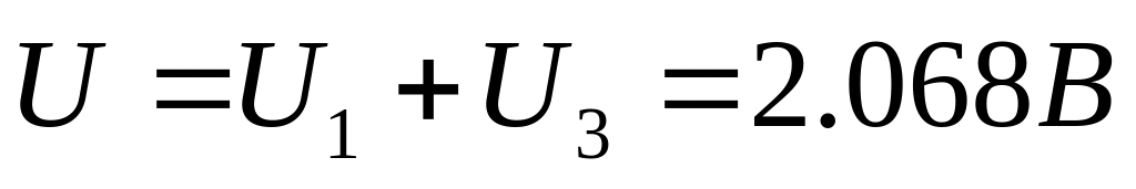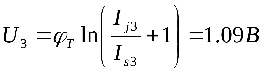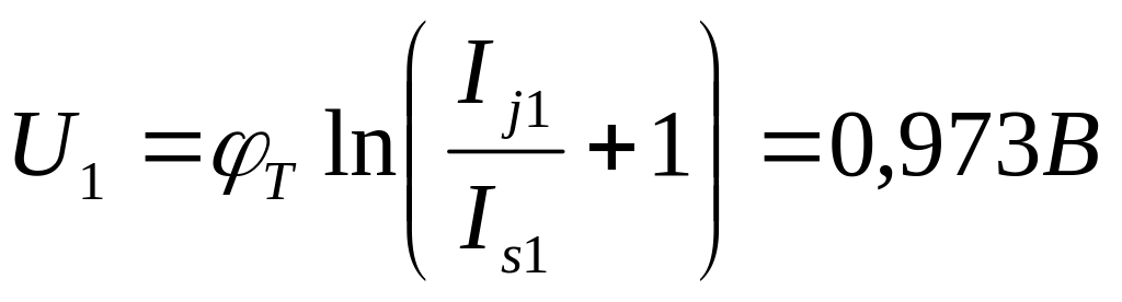 З урахуванням того, що напруга на 2 переході надзвичайно мала в порівнянні з напругами на прямозмішених 1-му та 3-му ЕД переходах то загальна напруга, прикладена до тиристора, визначається як сума напруг 1 та 3 переходів, які ми знайдемо з їх струмів: