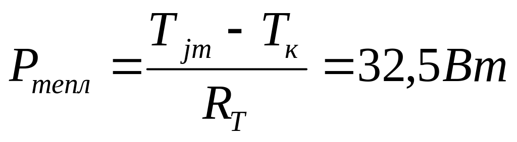 Максимальний струм тиристора знайдемо з умови, що при протіканні струму теплова потужність, яка виділяється, нагріває кристал до максимально допустимої температури Тjm=417 K.