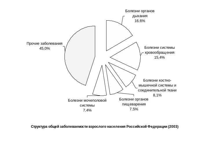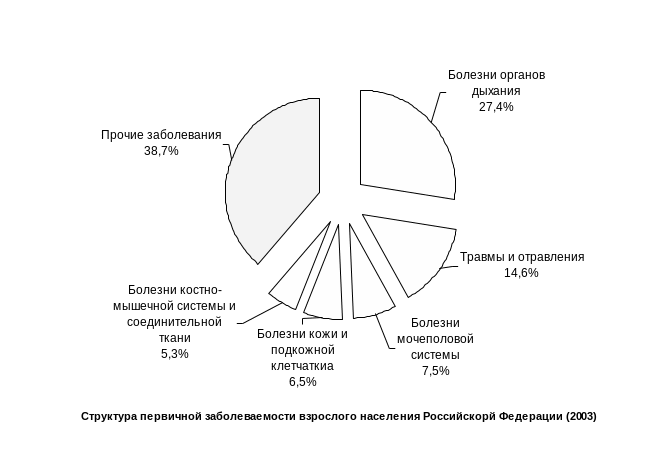 Рисунок. Структура общей заболеваемости всего населения Российской Федерации в 2005 г.