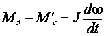2) при Мд < М'с – dω/dt < 0, т. е. имеет место замедление привода (очевидно, что замедление привода может быть и при отрицательном значении момента двигателя);